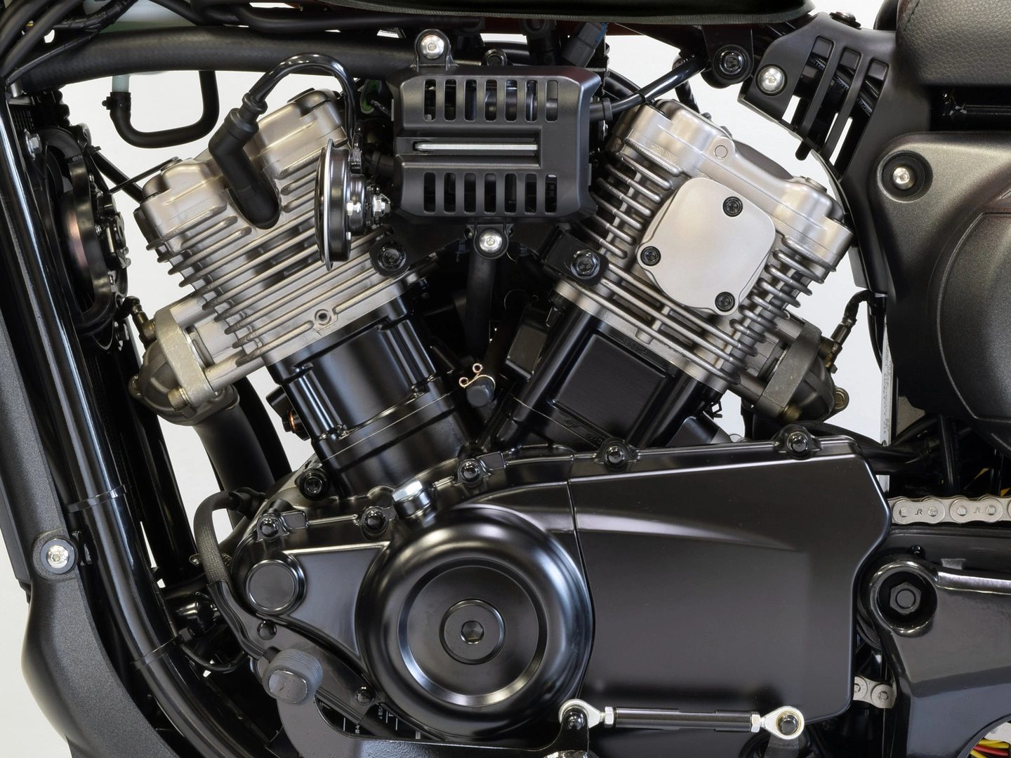 V型に配された2つのシリンダーの存在感、見るものを魅了する本格的ボバースタイル、125クラスの枠を超えたフルサイズクルーザーGV125S。 -