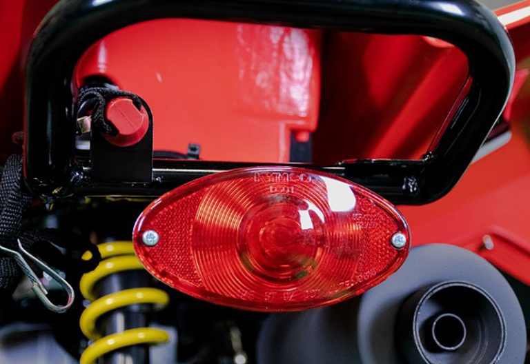 キッズやビギナーの入門用モデルに位置づけられるマングース90Sは、スポーティーなデザインを採用。跳ね上がったリアフェンダーや、コンパクトなヘッドライトなど、ファンライドの楽しみを具体化したデザインとしました。
