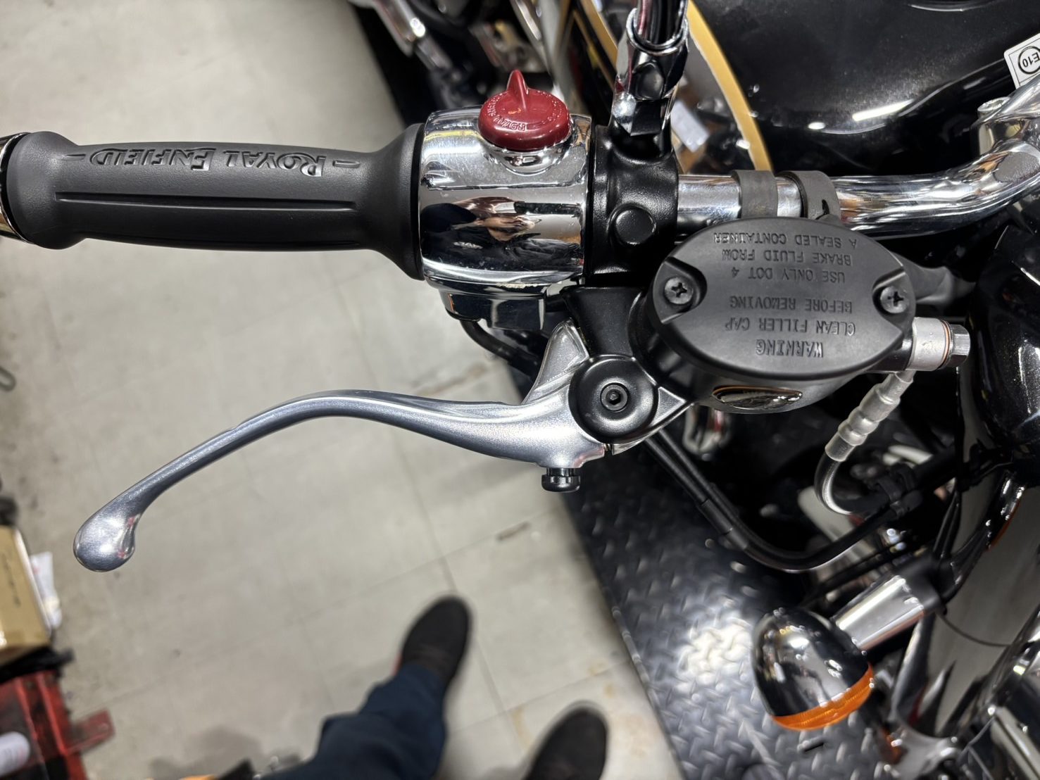 ブレーキフルードを入れるタンクが別体式になるので純正よりも外に出ています。