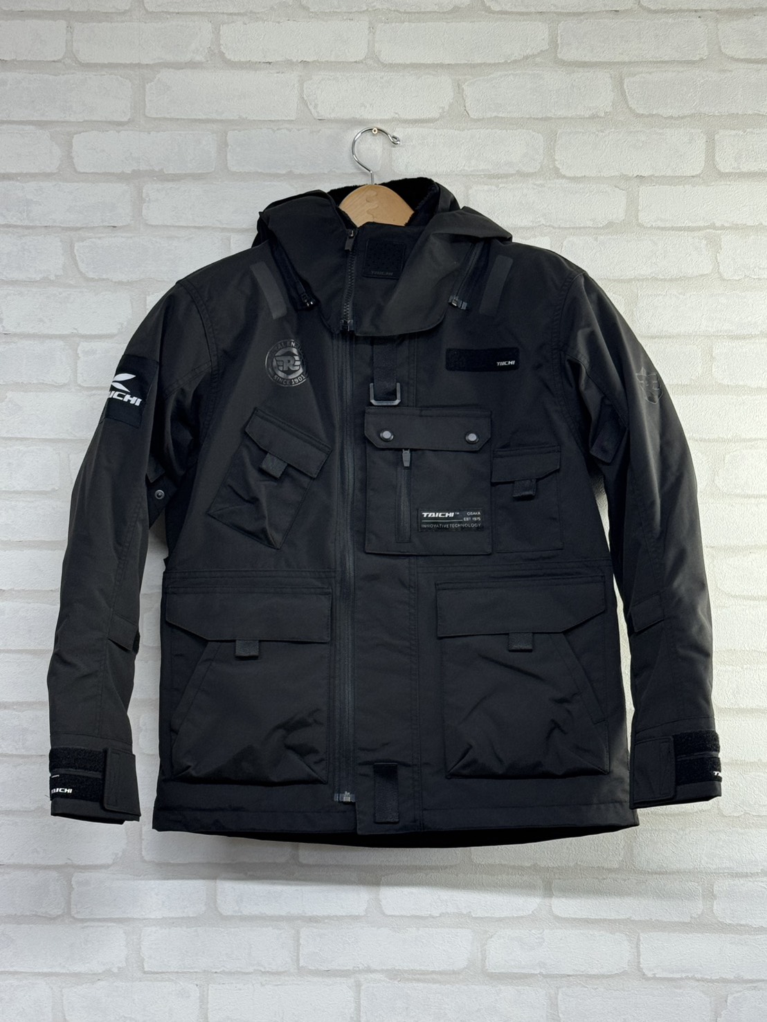 バイクウェアにありがちなメーカーロゴがドーン!って感じではなく、肩と胸、そして背面にこっそりとあります。